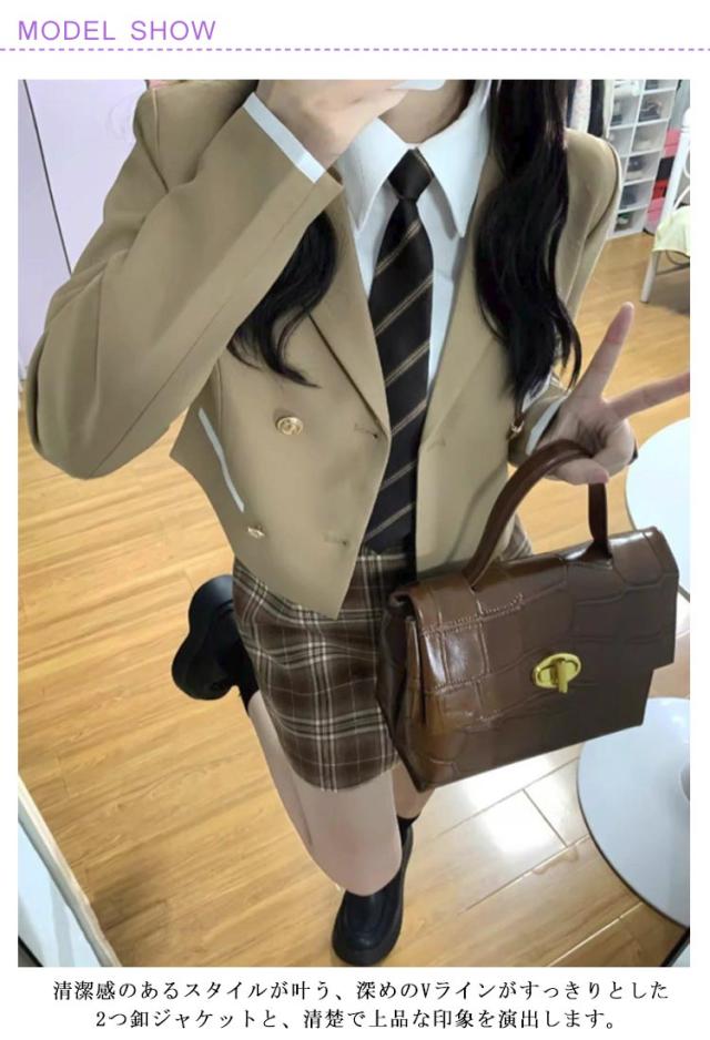 | 韓国アイドル風の可愛い制服コスチューム。 清潔感のあるスタイルが叶う、深めのVラインがすっきりとした2つ釦ジャケットと、清楚で上品な印象を演出します。 薄手軽量のさわり心地、着心地もよく、ポリエステル素材で気候が変わりやすい春や秋など肌寒い季節にも最適なジャケットです。 入学式、学園祭、文化祭、発表会など、フォーマルなシーンにピッタリなフォーマルスーツです。 【セット内容】ジャケット+シャツ+スカート | |