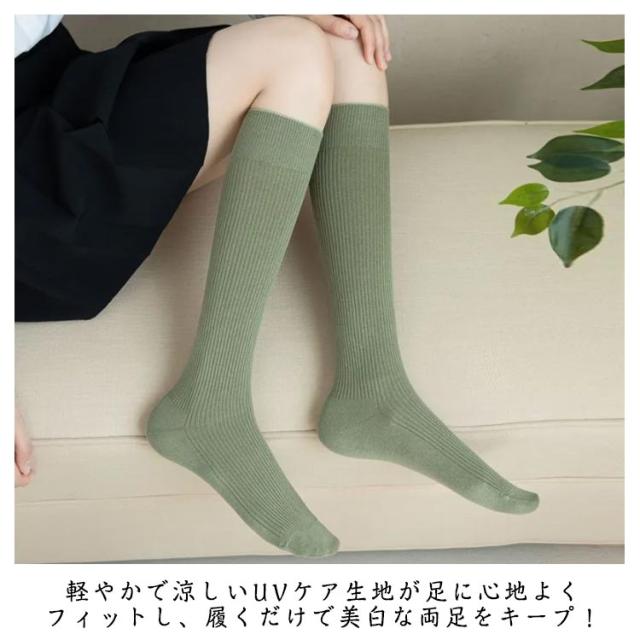 | タイツのように履けるハイソックス。膝下丈スカートから素足を隠せるので大人コーデにもコスパ抜群 軽やかで涼しいUVケア生地が足に心地よくフィットし、履くだけで美白な両足をキープ! 使いやすい色を揃っており、どちらも可愛いです。ショートパンツやミニスカートとも好相性♪ 通学・通勤用にもバッチリです。携帯便利で冷房の効きすぎたお部屋などで使いたい時にサッとバッグから出して使えます | |