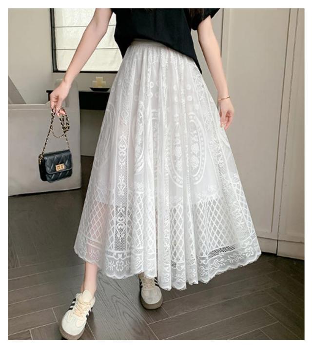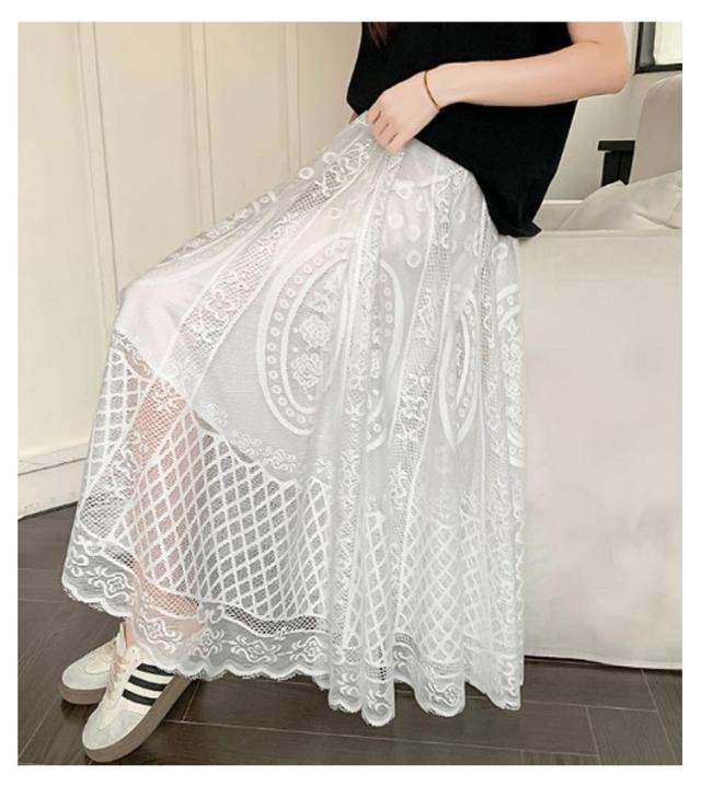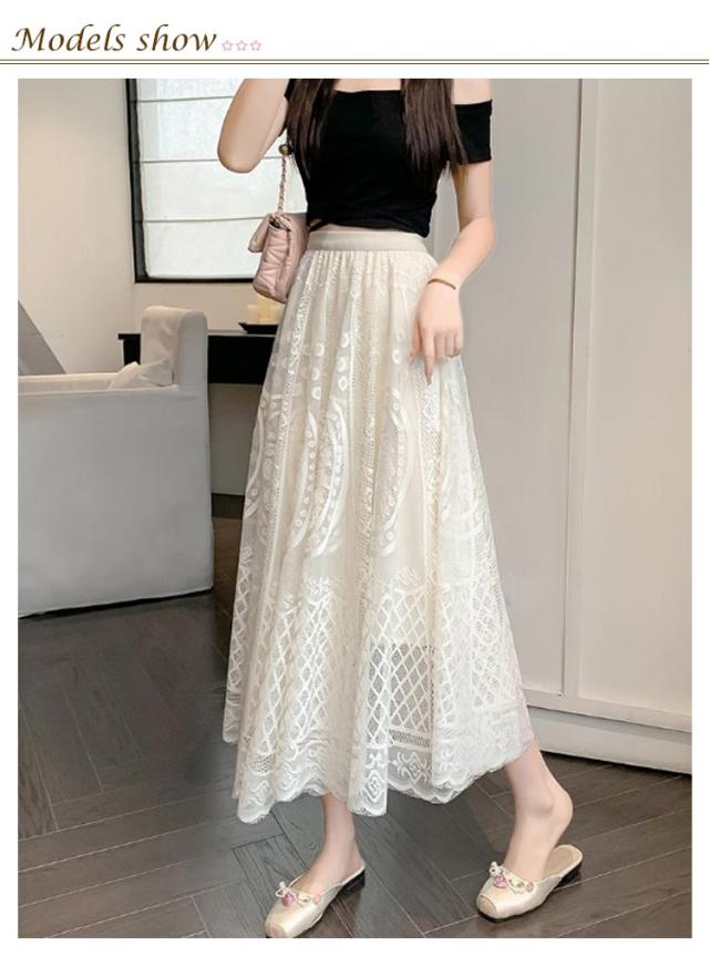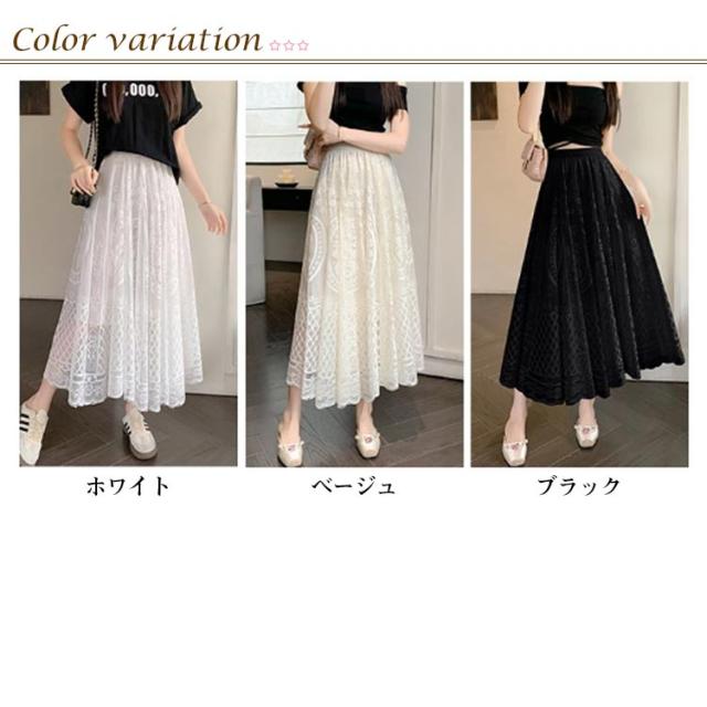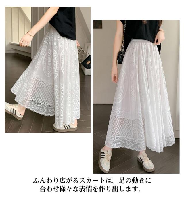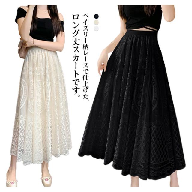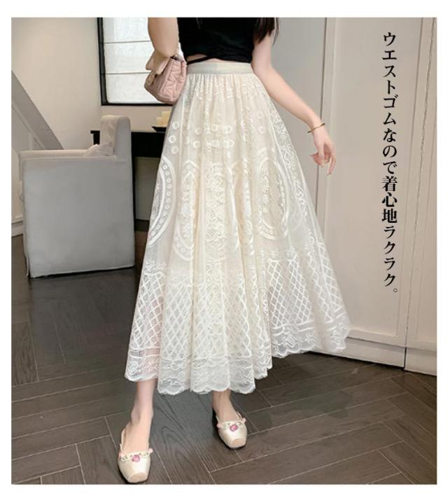 きれいめ 秋 ロング レース スカート レディース Aライン 花柄 ハイウエスト 冬 春 ウエストゴム ロングスカート マキシスカート スカート ロング レーススカート 花柄 フェミニン 上品 フレア 体型カバー 着痩せ 大人可愛い チュール