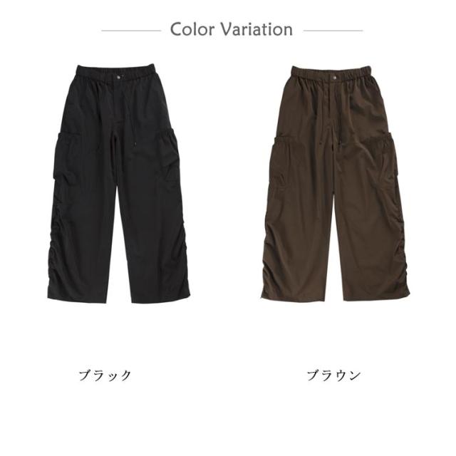 | 見逃せない定番のカーゴパンツ。 シルエットは腰周りから裾に向かってストンと落ちるワイドストレート型となっております。 ウエストはゴムと調節紐で調整可能で、着用感が心地よくフィットします。 登山、アウトドア、キャンプ、通勤、通学の仕事の上では良い選択で、大きいのポケット入りのものが便利です。 | |