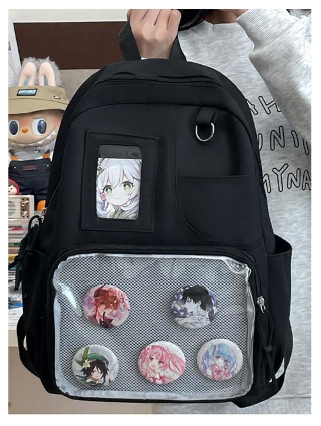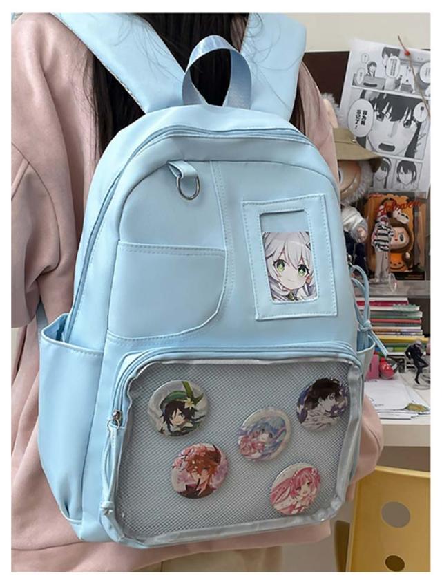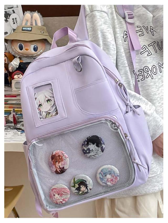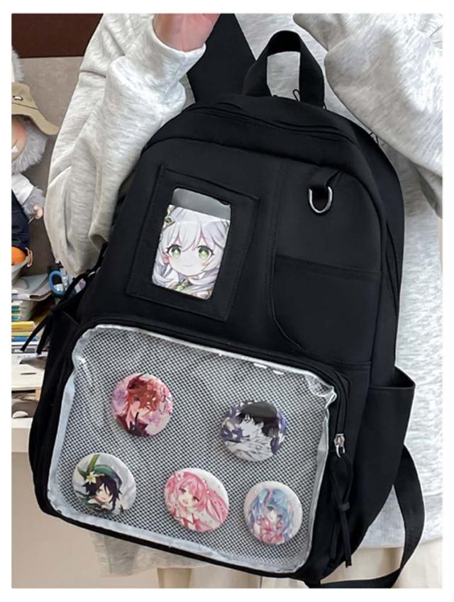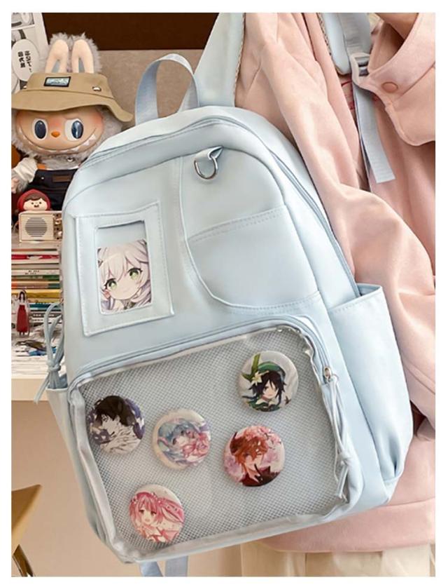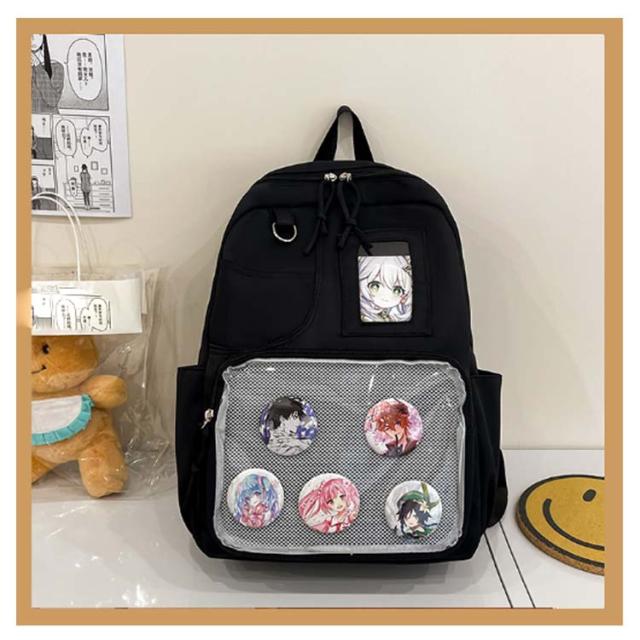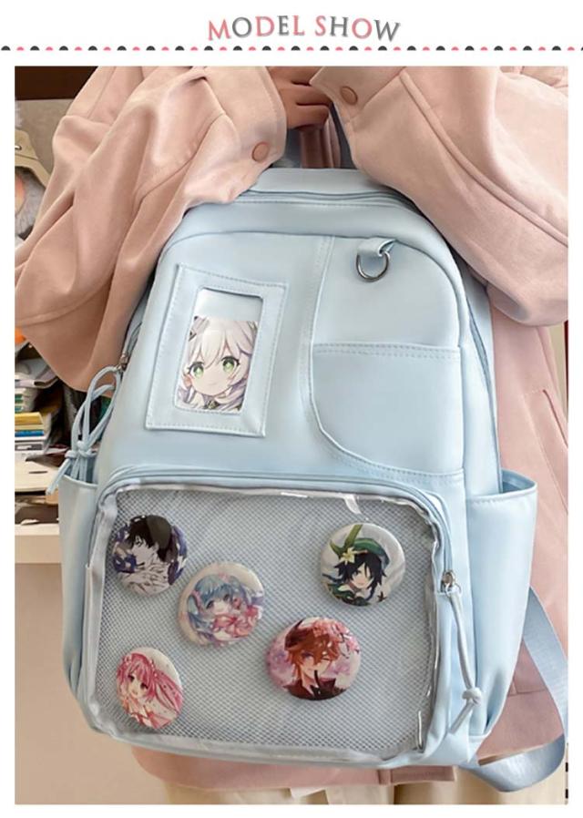 | 【痛リュック】【大容量・軽量】【4color】 缶バッジやぬいぐるみなど推しのグッズを入れて一緒にお出かけできる大容量の防水痛リュック♪ フロントに透明ポケットで見せたいアイテムを自由にアレンジできます。 好きなアイドルやキャラクターの写真、缶バッジ、ぬいぐるみ、萌グッズなど入れて一目瞭然です♪ 大容量のA4サイズ、雑誌 、ipad、折り畳み傘や本など収納可能ので、通学や出かけにもおススメです♪ 普段使いはもちろん、アイドルやアニメの推しイベントでも大活躍 | |