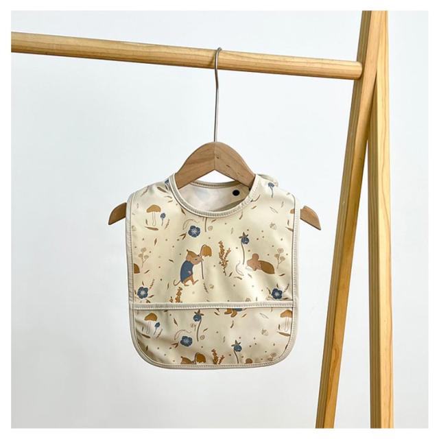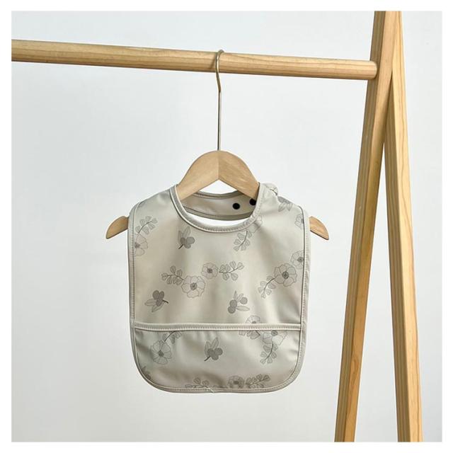 | ナチュラルで可愛いお食事エプロンです。 表面は防水設計なので食べこぼしで汚れても簡単にお手入れできます! ポケットがついているので食べこぼしをキャッチ。 首周りはボタンタイプなのでサイズ調節も楽々。 | |