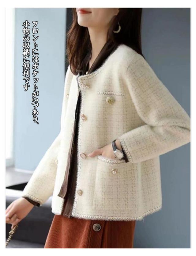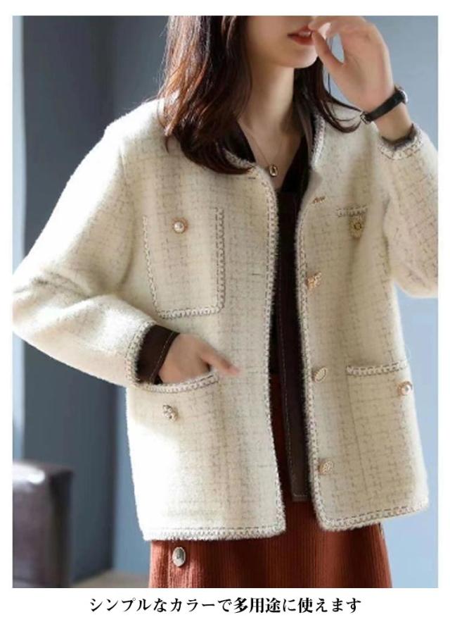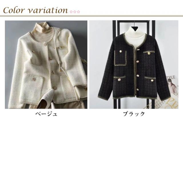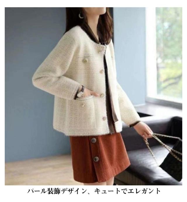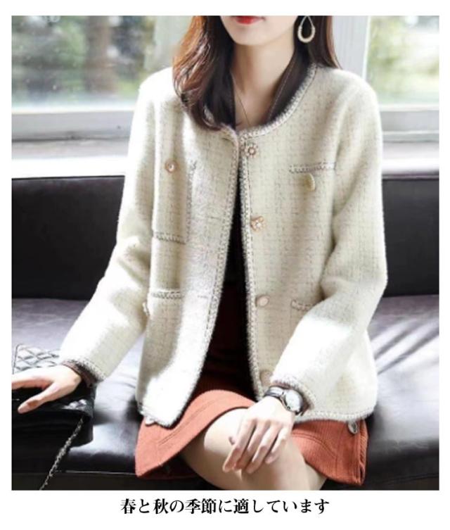 パール 長袖 レディース ツイードジャケット風カーディガン ツイードジャケット風カーディガン カーディガン ニット ジャケット 春 秋 カジュアル ツイード フォーマル 七五三 きれいめ ボレロ トップス