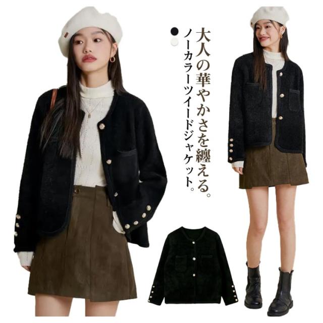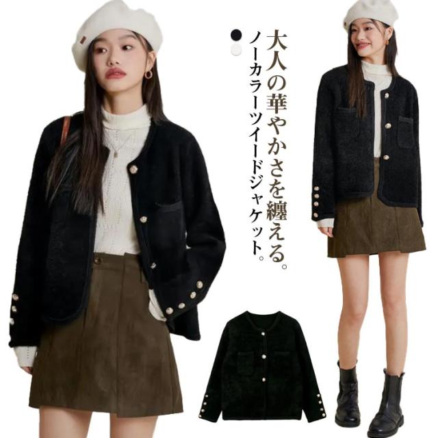 ツイードジャケット 大きいサイズ ノーカラージャケット 春 ノーカラー フォーマル ツイードジャケット レディース ママスーツフォーマル ライトアウター 秋 冬 結婚式 入園式 オフィス 通勤 長袖 卒園式 入学式 卒業式 大きいサイズ