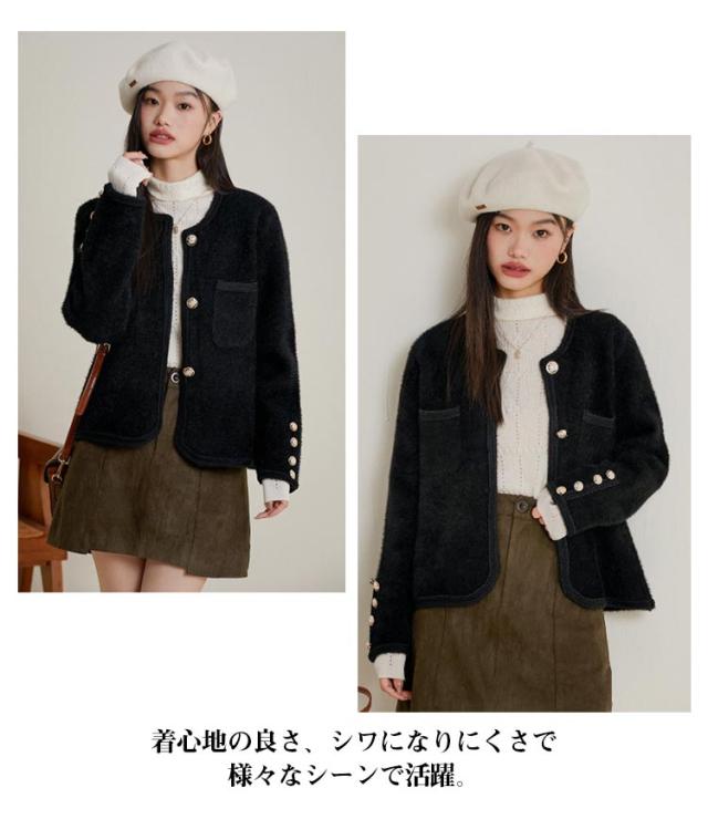| 大人の華やかさを纏える。 ノーカラーツイードジャケット。 ラウンドネックデザインで、ネックラインが顔の形に媚びません。 エンボスメタルのバックルはレトロで質感のあるデザインです。 着心地の良さ、シワになりにくさで様々なシーンで活躍。 ツイーディーなエレガントさとシャープなシルエットで品のある女性を演出してくれます。 | |