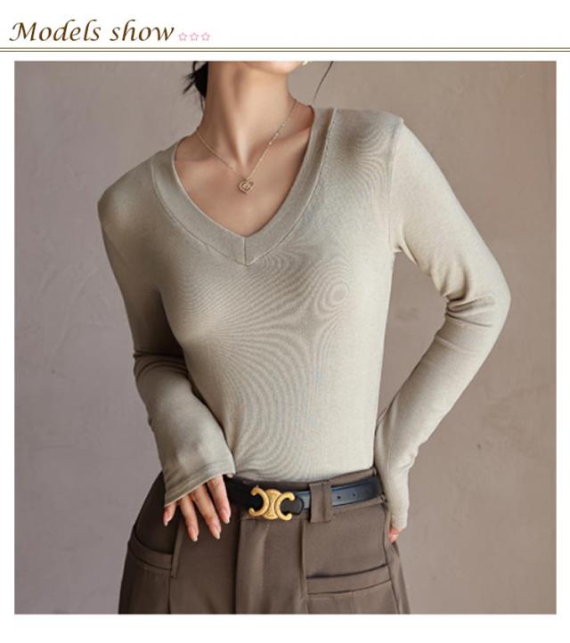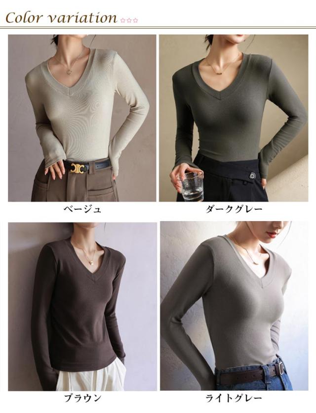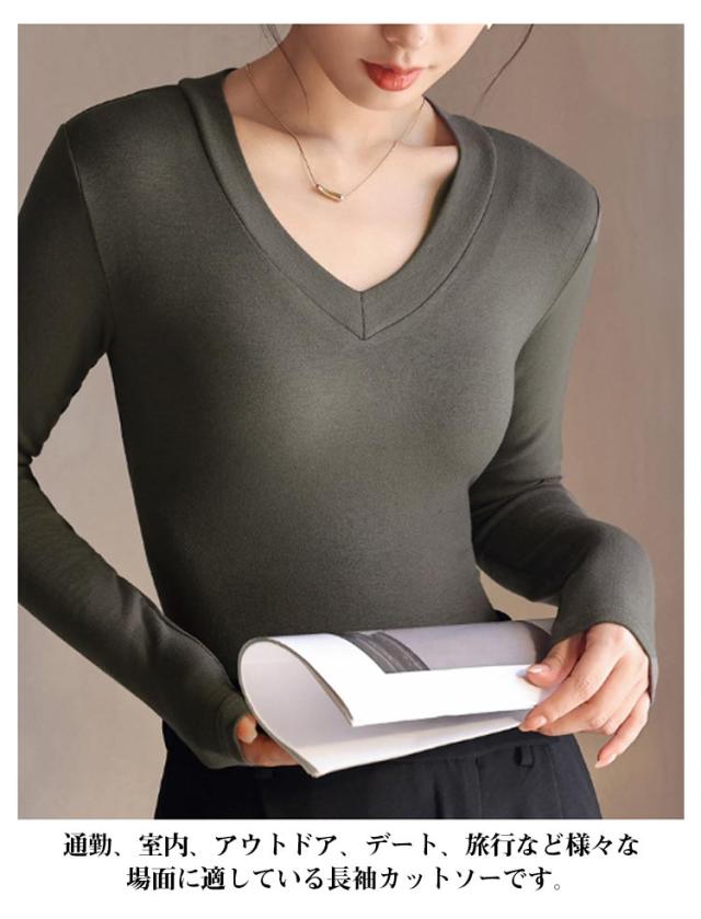| シンプルで着まわしの効くVネックカットソーが今年も登場です! 無地なのでいつでも流行に左右されなく、単着はもちろん、インナーとしてもよい。 気分に合わせてコートやシャツ、ジャケット、カーディガン、トレンチコート、冬はアウターも合わせて、ロングシーズン活躍します。 通勤、室内、アウトドア、デート、旅行など様々な場面に適している長袖カットソーです。 | |