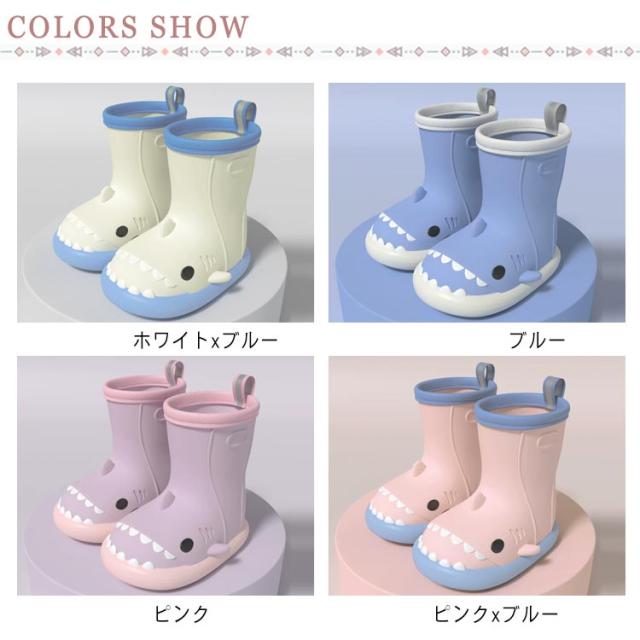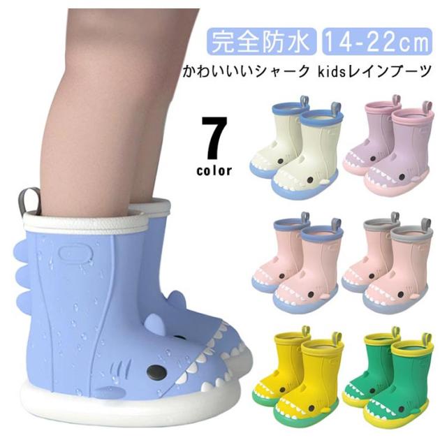 | かわいいいシャーク kids 完全防水 レインブーツ 14-22cm 取り外しができるインソールで便利 雨道でも安心♪縫い目がないので防水性 濡れた床も滑りにくい、クリップ力が強い靴底 長時間歩いても疲れにくい柔らかい素材 | |