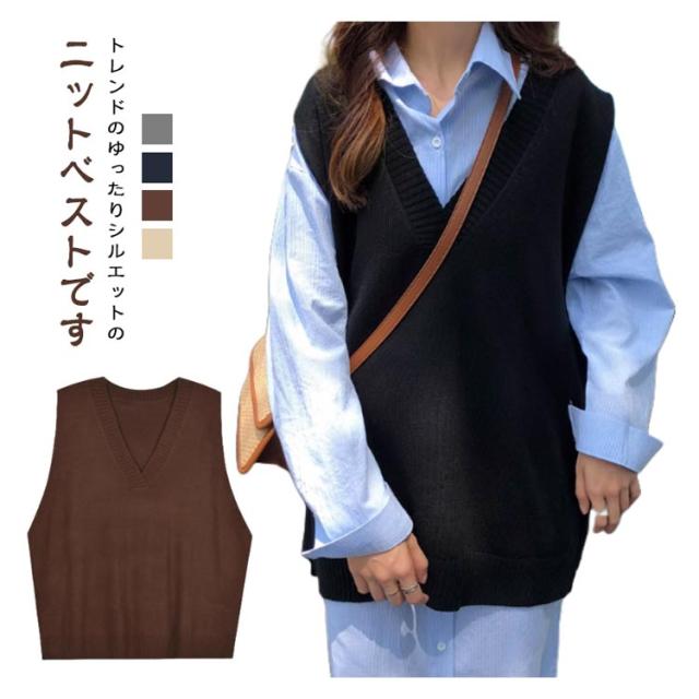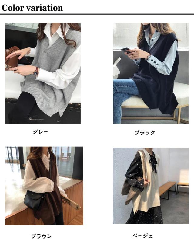 レディース トップス ロングベスト ニットベスト ジレ ゆったり ニットベスト セーター プルオーバー 無地 Vネック 大きめ 大人可愛い レイヤード 重ね着 カジュアル きれいめ おしゃれ 春 秋 冬