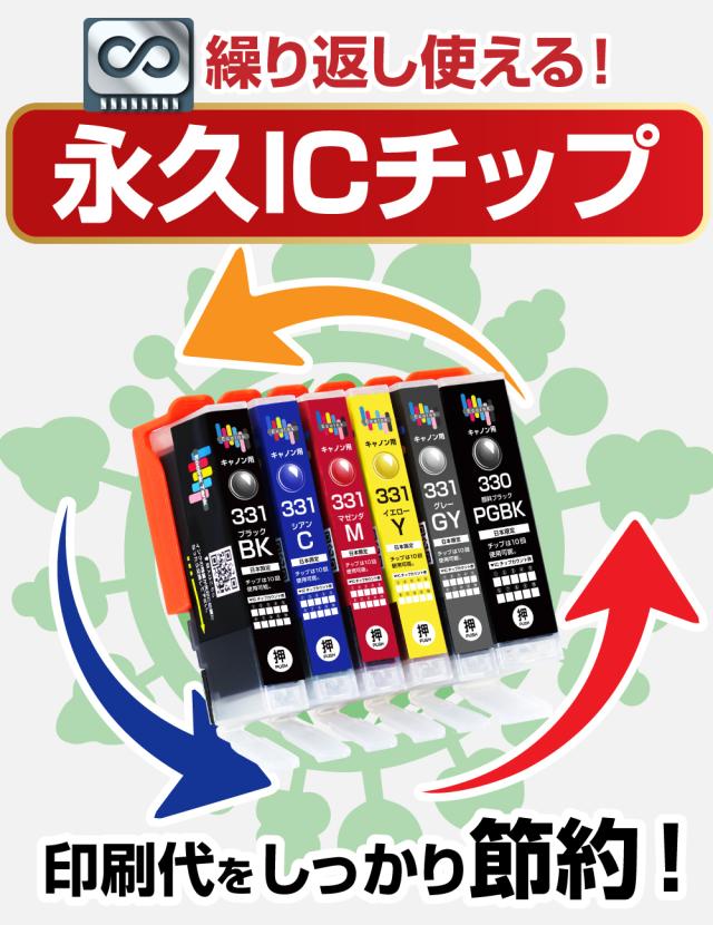 【永久ICチップ付き】BCI-331+330 / 6MP 大容量 6色セット スターターセット キャノン Canon 互換インクカートリッジ エコロジー ゴミ削減 BCI 331 330 6MP PIXUS TS8830 / PIXUS TS8730 / PIXUS TS8630 / PIXUS TS8530