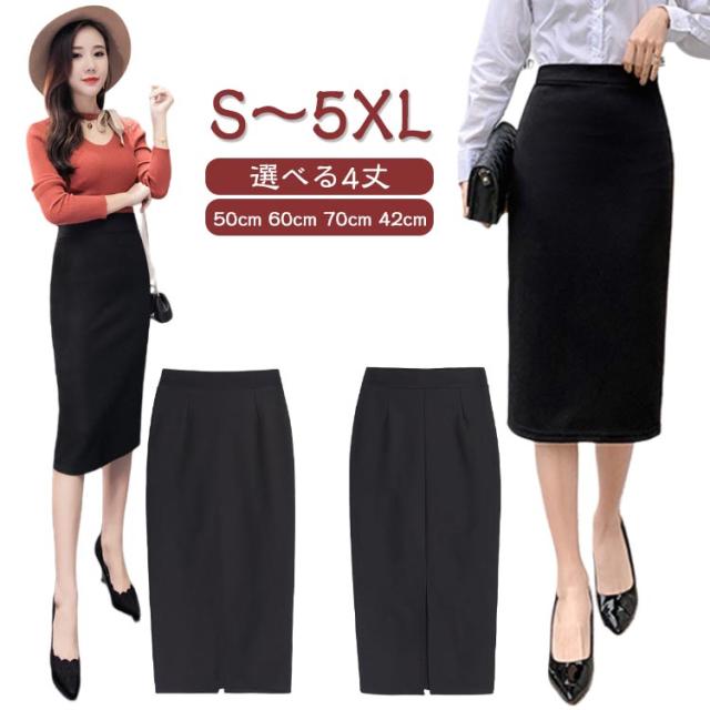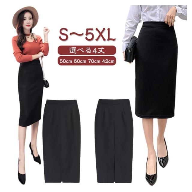 膝丈 レディース 洗える タイトスカート 選べる着丈 50cm ストレッチ 60cm 通勤 スカート フォーマルスカート オフィス ロング丈 70cm スーツ 事務服 選べる着丈 ボトム セレモニー ビジネス 春 夏 秋 大きいサイズ ブラック