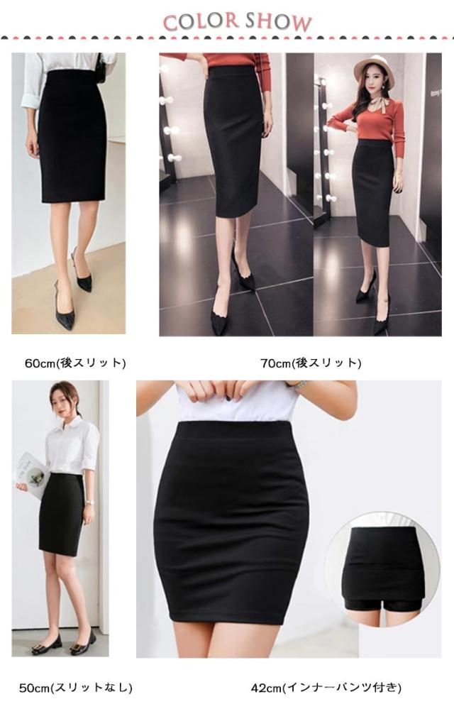 | 色 | 60cm(後スリット) 70cm(後スリット) 50cm(スリットなし) 42cm(インナーパンツ付き) |