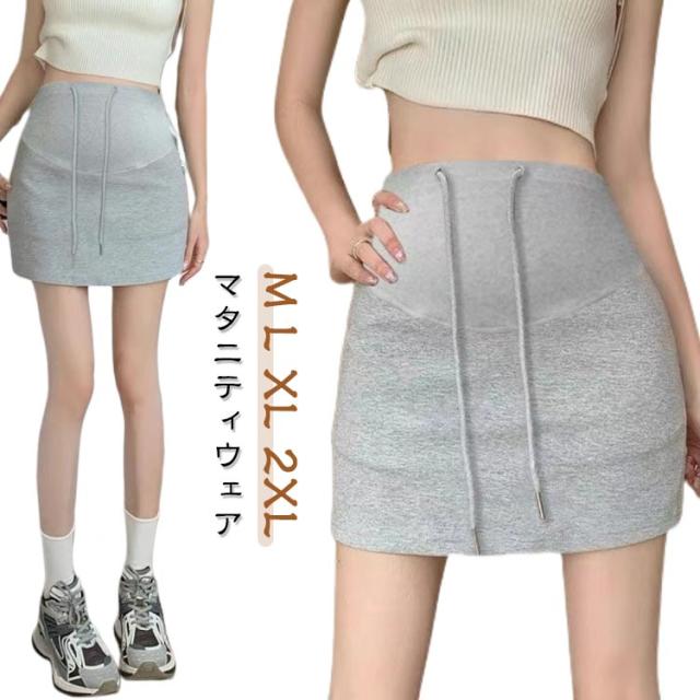 妊婦服 ウエストゴム スカート 紐 ストレッチ マタニティウェア マタニティ ハイウエスト タイトスカート スウェットスカート 無地 妊娠 マタニティスカート 春 夏 秋 部屋着 ショート丈 ミニスカート ボトムス 高見え