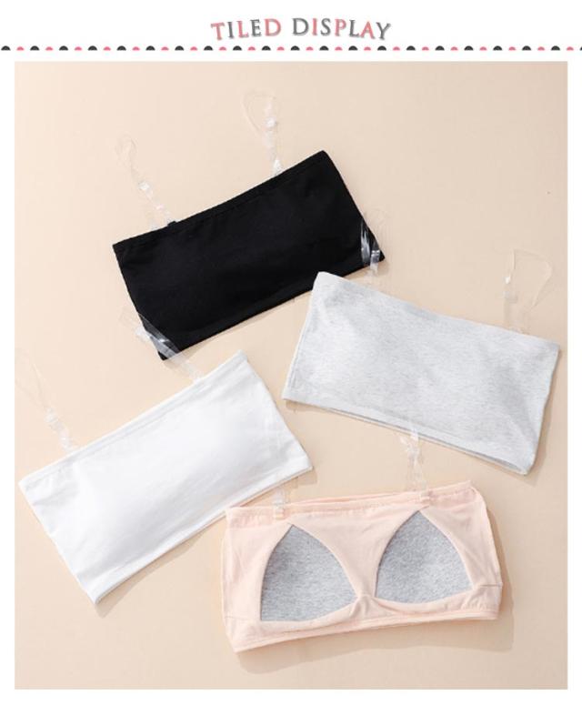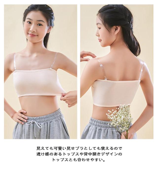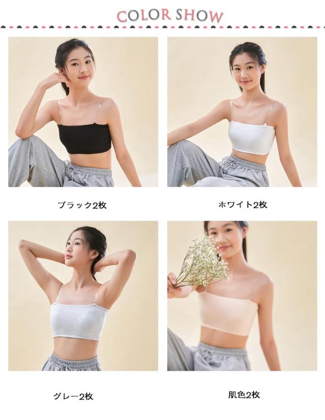 2枚セット!チューブトップ レディース 白 ジュニア カップ付き キッズ 子供 女の子 ずれない 2枚セット!チューブトップ ダンス衣装 スポーツブラ 肩紐なし ノンワイヤー 落ちない 黒 透明なストラップ付き インナー ベリーダンス レッスンウェア