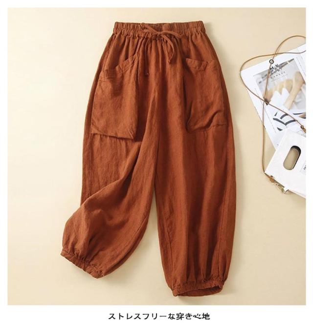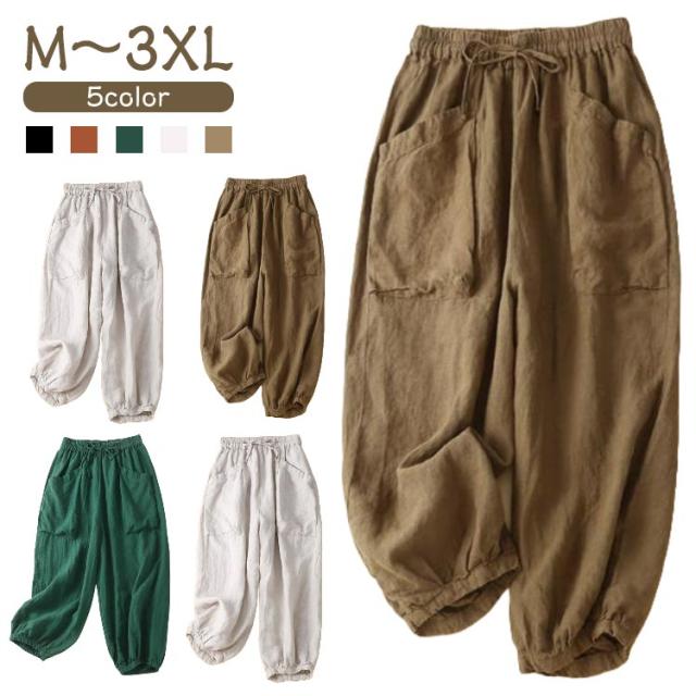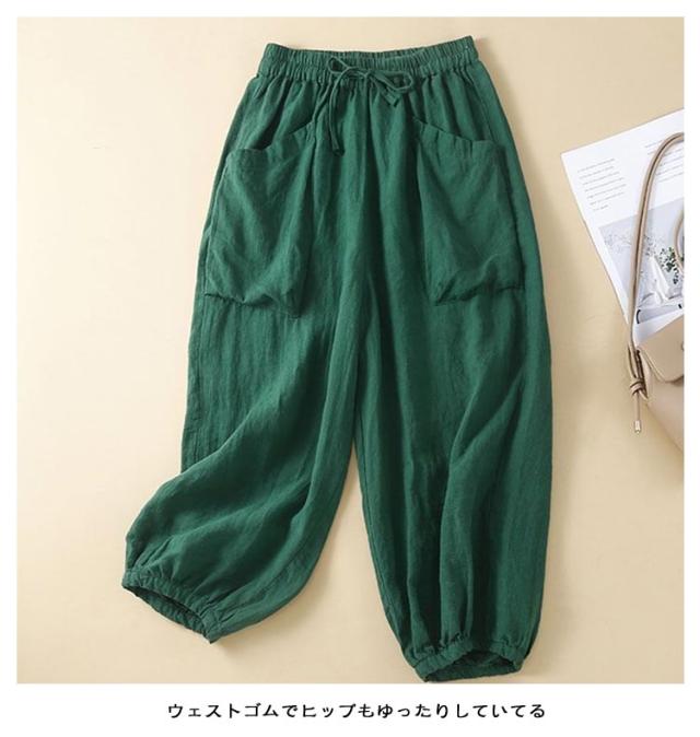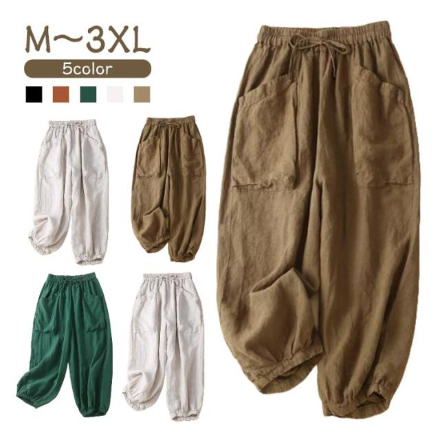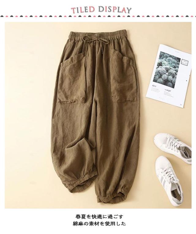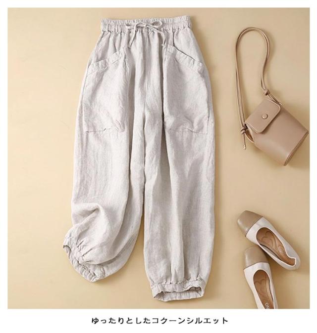 バルーンパンツ レディース 春夏 綿麻パンツ ゆったり サルエルパンツ きれいめ カジュアル 涼しい 9分丈 パンツ 九分丈 コクーンパンツ きれいめ 夏 リネン コットン パンツ ウェストゴム 大きいサイズ 体型カバー 部屋着 薄手