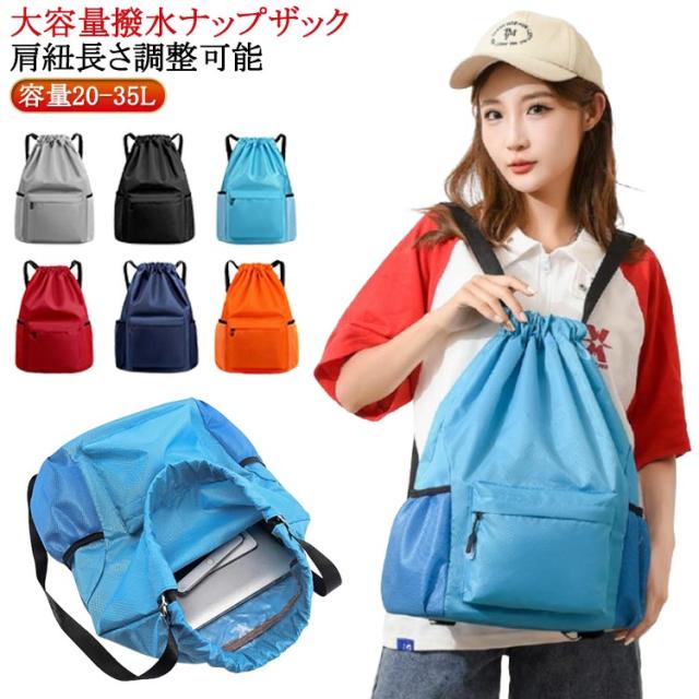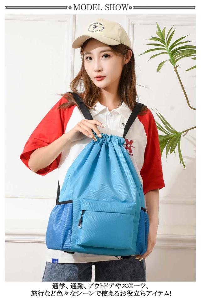 水泳 プレゼント 防災グッズ 撥水加工 レディース ポッケト付 巾着 メンズ ジュニア 大容量 ナップザック バッグ 旅行バッグ ナイロン 軽量 防水バッグ フィットネス ジム ジュニア 肩紐長さ調整可能 アウトドア ハイキング トレッキング ギフト