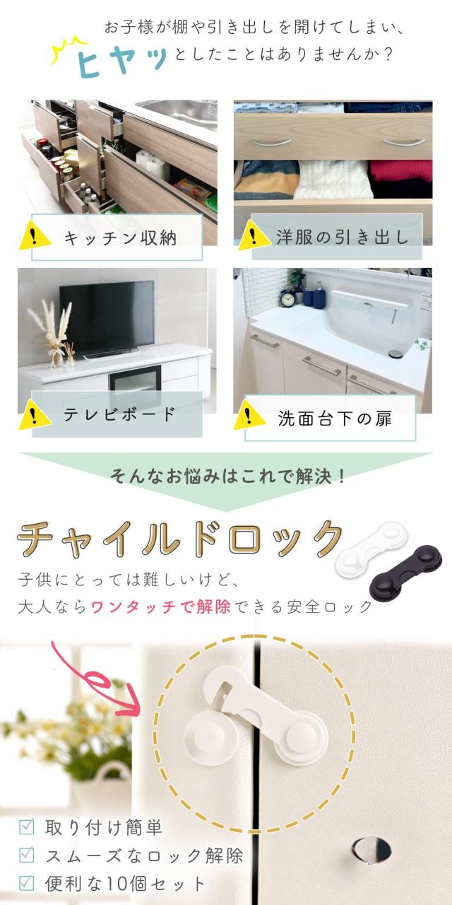 【MILASIC公式】チャイルドロック 10個セット 引き出し 扉 窓 ドアストッパー ベビーガード 安全 いたずら防止 セーフティーロック 地震対策 防災 怪我防止 貼るだけ 子供 赤ちゃん ペット おしゃれ キャビネット 引き戸 ドア タンス 戸棚 クローゼット 指はさみ防止 冷蔵庫