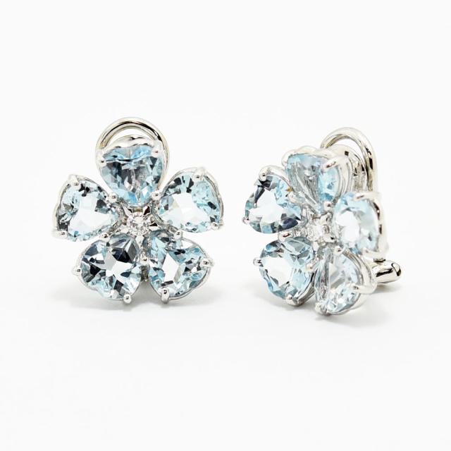 アクアマリン ダイヤモンド イヤリング 花 フラワー K18WG 新品磨き仕上げ 中古