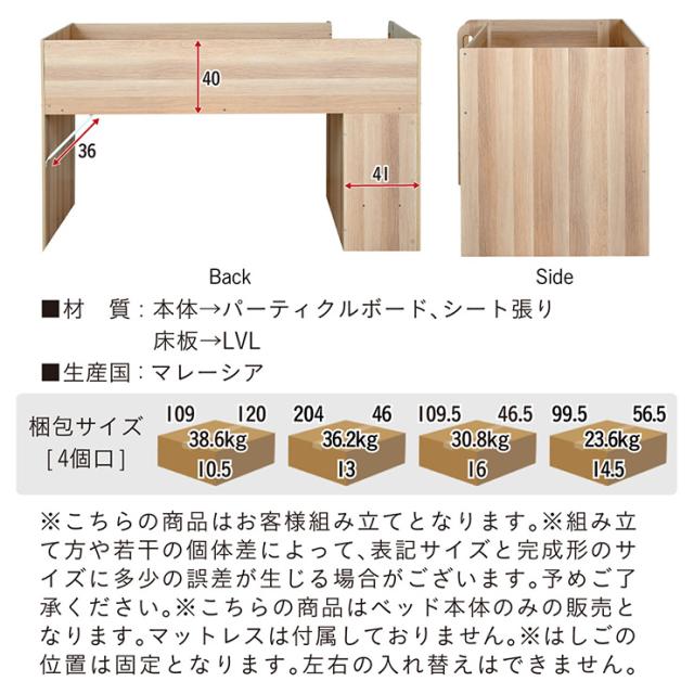 梱包サイズ(4個口):109 x 120 x 10.5cm(重量:38.6kg)・204 x 46 x 13cm(重量:36.2kg)・109.5 x 46.5 x 16cm(重量:30.8kg)・99.5 x 56.5 x 14.5(重量:23.6kg)