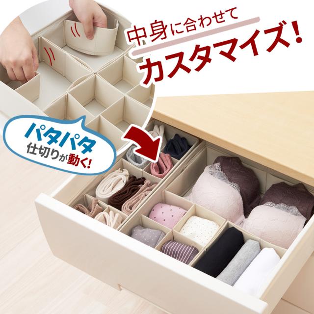 下着 靴下 収納 パタパタ 仕切りが動く収納ボックス クローゼットケース用L(33.5×33.5cm) 1個入 JJ-002 | 仕切りケース 下着収納 引き出し タンス 仕切り 衣類 整理 収納ケース インナーケース チェスト ブラ ハンカチ