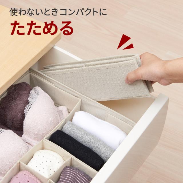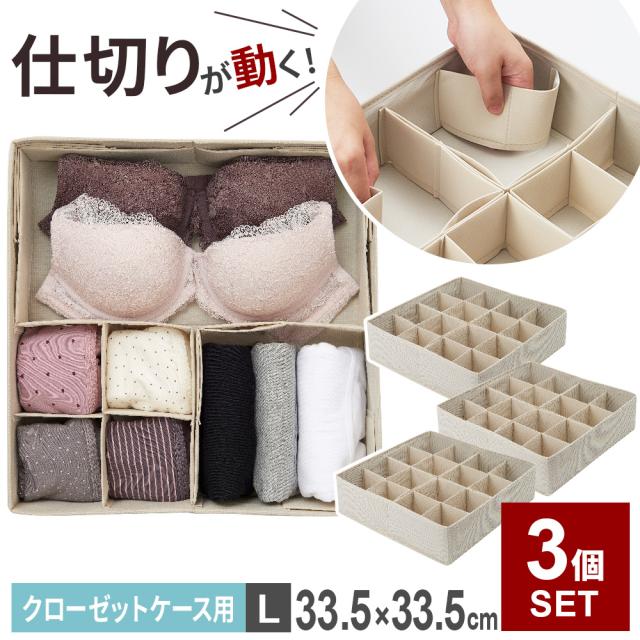 下着 靴下 収納 パタパタ 仕切りが動く収納ボックス クローゼットケース用L(33.5×33.5cm) ×3個セット JJ-002 | 仕切りケース 下着収納 引き出し タンス 仕切り 衣類 整理 収納ケース インナーケース チェスト 衣類小物