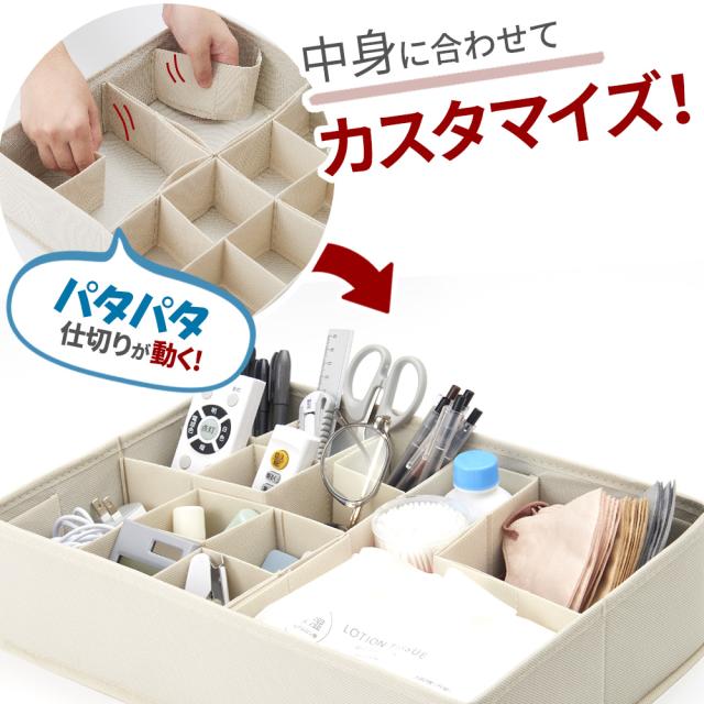 整理整頓 収納ボックス クローゼット 衣類収納 洋服収納 収納ボックス 布製 ファブリック素材 薬箱 文房具 メイク用品 仕切り付き 折りたたみ 折り畳み 柔らか素材 滑りにくい カスタマイズ サイズに合わせる 整理収納 引き出し 押し入れ 整理グッズ 取り出しやすい すっきり 片付く 動かす仕切り インナー収納 パッチワーク 端切れ収納 パーツ収納 スリム コンパクト 省スペース 整理ボックス お片付け 収納テク ミニマル収納 シンデレラフィット おうち整理 収納テク 収納アイテム 収納上手 家事楽 家事ラク 隙間収納 簡単収納 日用品収納 時短収納 おすすめ 人気 4900309029619