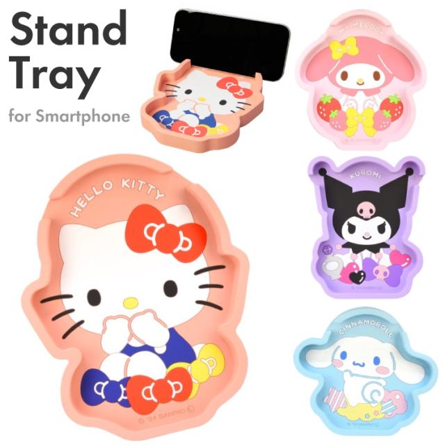 サンリオ スマホスタンド トレイ キティ マイメロディ クロミ シナモロール キャラクター グッズ スマホ置き 卓上 デスク インテリア オブジェ 飾り 小物入れ モバイル スタンド スマホ 立て