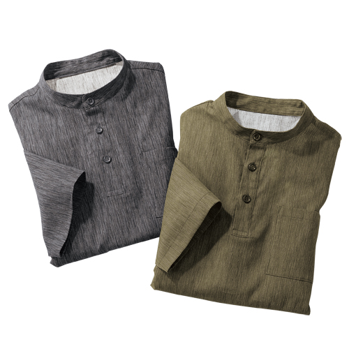 日本製 高島ちぢみ 清涼裾リラックスシャツ 男性用 全2色 スタンドカラーシャツ 半袖 プルオーバー メンズ 紳士服 シニア 男性 グレー カーキ ちぢみ織り コットン 綿 胸ポケット付き シンプル シニアファッション 40代 50代 60代 70代 80代 90代 父の日 お父さん おじいちゃん 春物 夏物 春夏