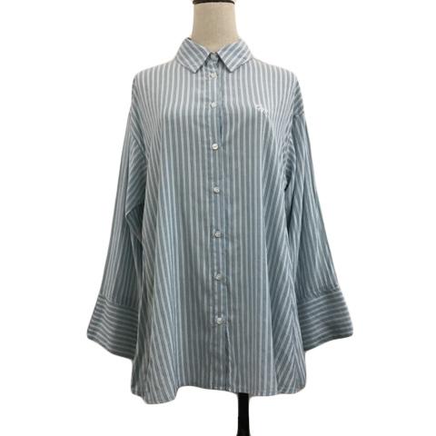 【中古】エムズエキサイト シャツ ブラウス スタンダード ストライプ 刺繍 ロゴ オーバーサイズ 長袖 F 水色 白
