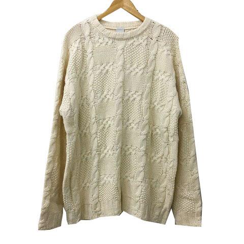 【中古】キャスパー ジョン セーター ニット プルオーバー ラウンドネック ケーブル編み 長袖 M 白 ベージュ