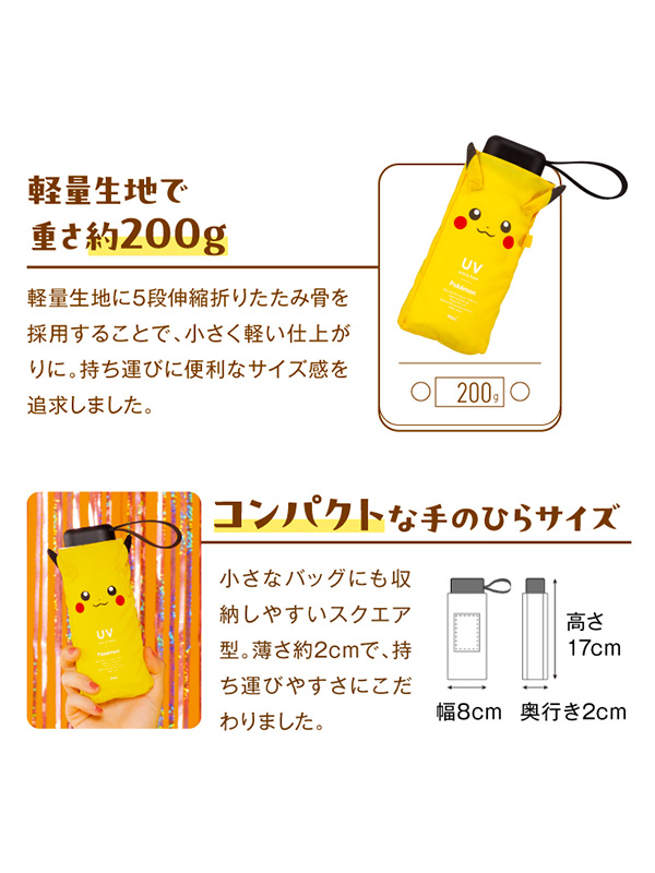 ポケモン Wpc Blackout Adventure Partner Mini ポケモン Wpc 遮光 冒険のパートナー ミニ 【Wpc(ダブルピーシー)】 「新たな可能性を生み出す」をスローガンに2004年に誕生したドメスティックブランド。 様々な世代・ジャンルに合った方へ、雨の日だけでなく、天気によって変わる”ライフスタイリング”を提案していきます。 そして。ご愛用いただけるお客様の毎日が楽しくなる製品をお届けします。 【ポケットモンスター】 『ポケットモンスター』シリーズとは、プレイヤー自身が主人公となり、 ポケットモンスター(略してポケモン)という不思議な生き物たちとともに冒険を進めていく、ロールプレイングゲーム(RPG)だぞ! ストーリーを1人で楽しむだけでなく、友だちといっしょに、ポケモンを交換したり対戦をしたりして楽しむことができるのも、ポケモンの大きな特徴の1つだ。 ポケモンの人気キャラクター達がwpcの傘に久しぶりの登場です!! 男性でも持ちやすいアイテムに仕上がっています。 コンパクトさを追求!鞄のポケットにスッポリと収納できるサイズ感の折りたたみ傘。 スクエアなので鞄のシルエットを崩さず収納できます。 [開閉方法] 手開き(イージーオープン)仕様。ポキポキ折らずにスムーズに開閉できます。 ご使用になる前に製品に付属しているご使用上の注意をお読みください。 【遮光率・UVカット率100%、UPF50+ 完全遮光日傘】 全カラー遮光率・UVカット率ともに100%、UPF50+を実現し、日差しからお肌を守ります。 日焼けを防ぐために必要なUVカットの性能を兼ね揃えた、紫外線対策にはピッタリの日傘です。 涼しく過ごすための遮熱性も優れているため、暑い夏の熱中症対策にも。 ※記載の遮光率・紫外線遮蔽(UVカット)率・UPF値は生地の状態での測定値です。 傘本体の性能を示す数値ではございません。 また、生地に施された刺繍・縫製などUV加工生地以外の部分もその限りではありません。 | ||||||||||
