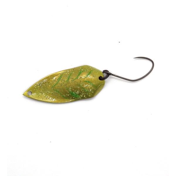 丸湖スプーンのスタンダードと成り、誕生から多くのユーザー様に支えて戴いてるスプーン。他メーカーに真似の出来ないコンセプトスプーンを目指し、熱意と手間を惜しまずに開発。誰にでも使い安いをコンセプトに、投げやすいウエイトに何処にも無いアクションを融合させた、このサイズのスタンダードスプーンです。中層から底までカバー出来、リトリーブにロットティプに伝わるスプーン動きが解り安く、その変化で当たりを取る事が出来るのはラインテンションが極限に張れるのは水受けの抵抗をラジアル化してる証です。是非初心者方でもロッドティプの変化でトラウトの当たりを楽しんで戴ける様にセッティングを堪能して下さい