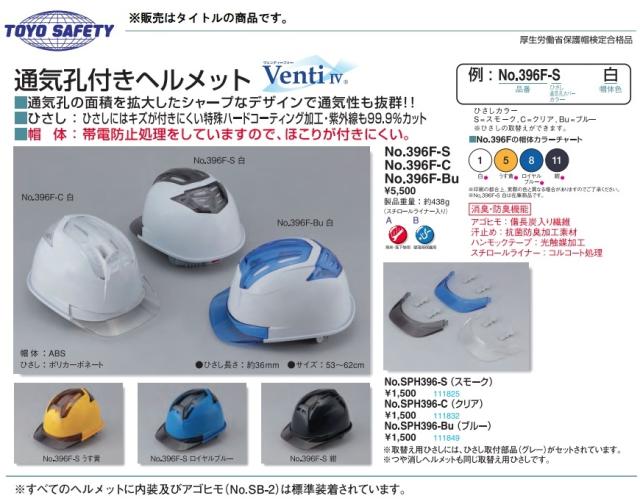 トーヨー No.396F-S Venti IV 通気孔付きヘルメット 紺 ヒサシ:スモーク ヴェンティー IV TOYO 111818 ’