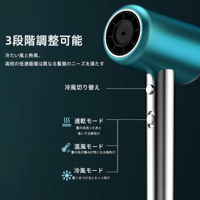 【3段階調整可能】冷たい風と熱風、高校の低速循環は異なる髪質のニーズを満たす。ボタン一つで冷風モードを切り替えられます。