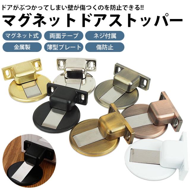 ドアが壁等にぶつかってしまうのを防止するマグネット式ドアストッパー。