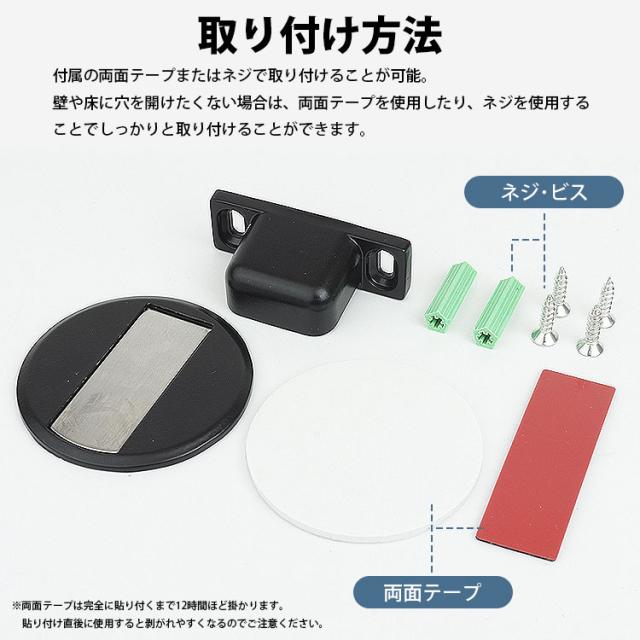 マグネット式 ドアストッパー フラット 薄型 戸当り 強力 磁石 金属製 室内 ドア用 扉 DIY 金具 キャッチ ドア固定 ドア止め 両面テープ 固定ネジ付属 PR-MAGSTO【メール便 送料無料】