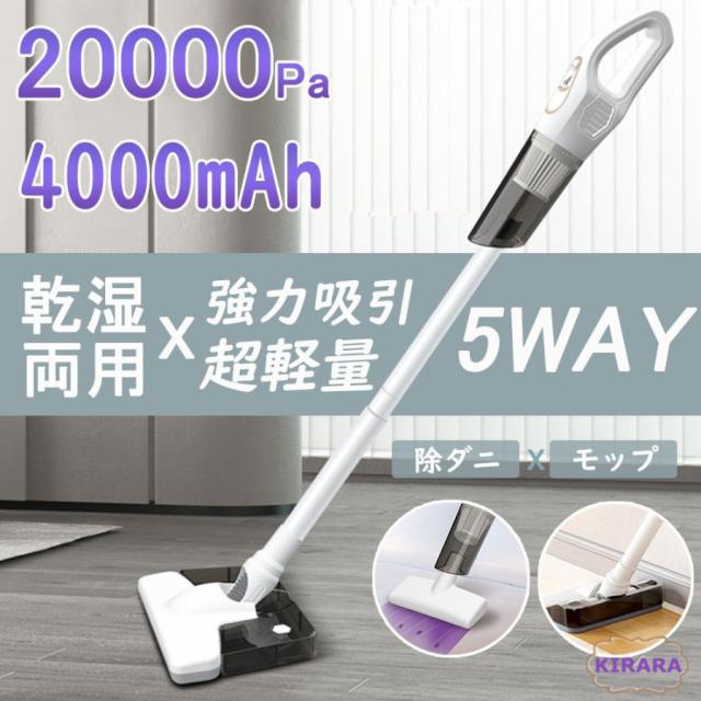 掃除機 コードレス 多機能 5WAY 強力吸引 20000pa コードレス掃除機 超軽量0.4KG 乾湿両用 モップ ダニ駆除 大容量4000mAh スティッククリーナー 省エネ