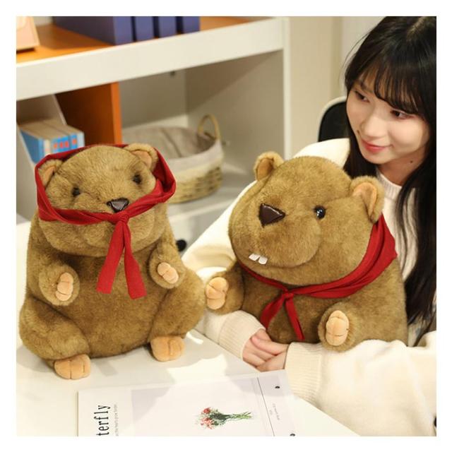 マーモットぬいぐるみ 動物 ぬいぐるみ 可愛い もちもち 小動物 肌に優しい ギフト かわいい 癒される 子ども ストレス 発散 クリスマス プレゼント 25cm