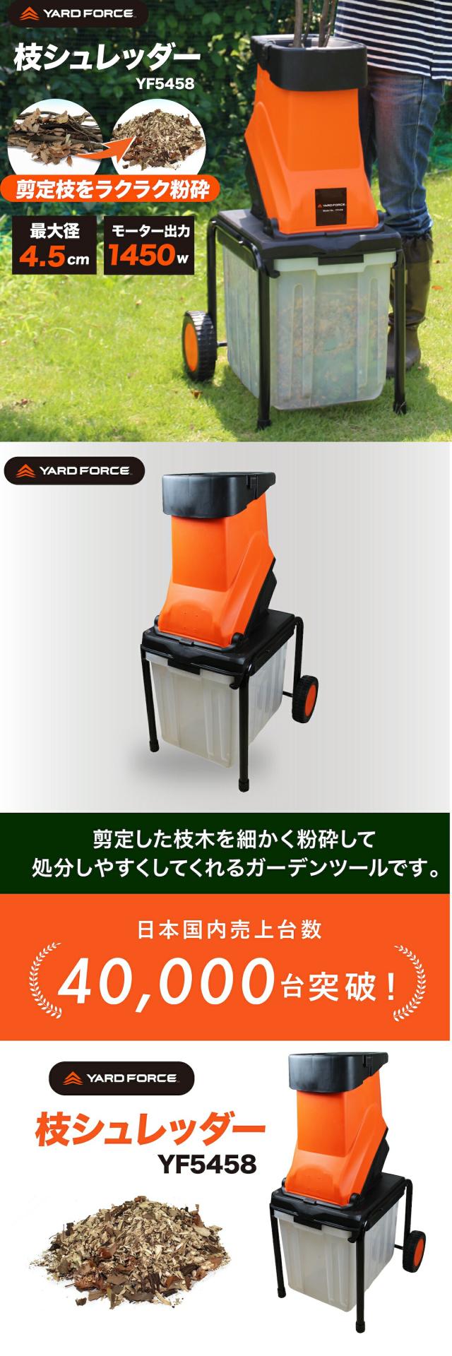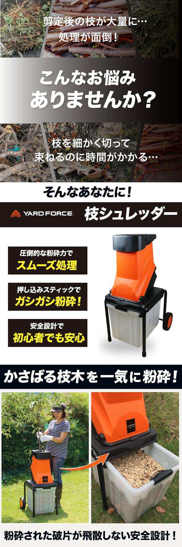 YARD FORCE 枝シュレッダー ガーデンシュレッダー ウッドチッパー 大容量ガーデンバッグ付き 粉砕機 電動ガーデン枝シュレッダー 回転刃式 ヤードフォース YF5458 移動式 4.5cm対応