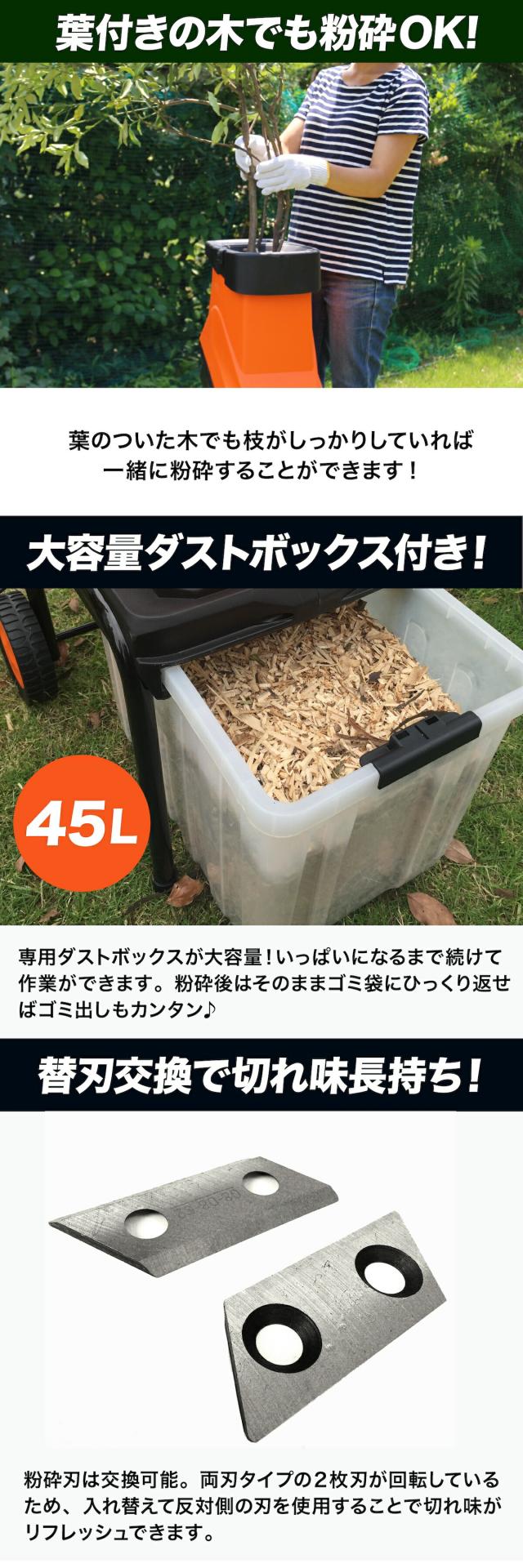 高枝切りなどで切断したかさばる枝木を細かく粉砕