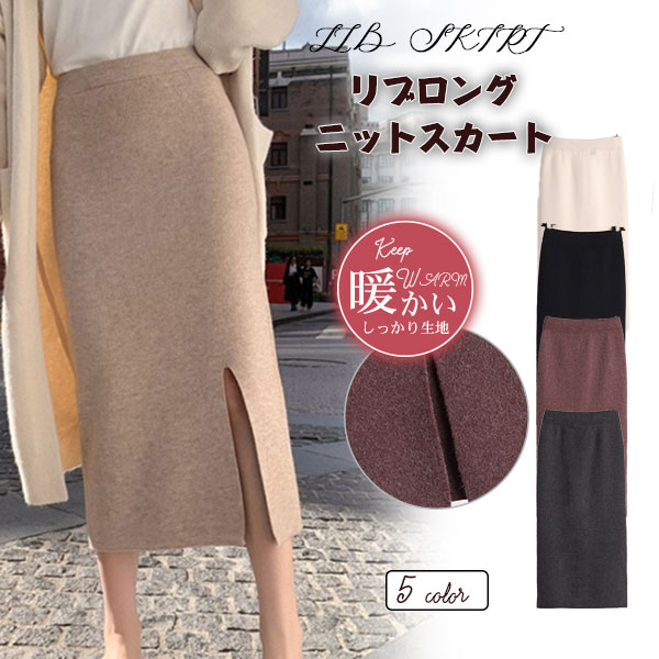 ニットスカート レディース 即納 タイトスカートスリット膝丈 ストレッチ ミモレ丈 ボトムス ひざ丈 ロング丈 新作 秋冬 マキシ丈 40代