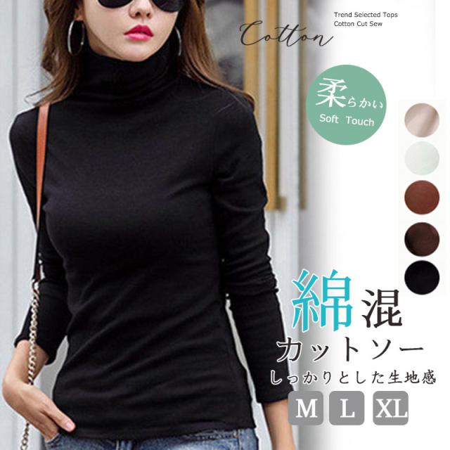 カットソー レディース 長袖Tシャツ タートルネック スリム ストレッチ 無地 きれいめ タンクトップ 秋冬 冬服 インナー きれいめ