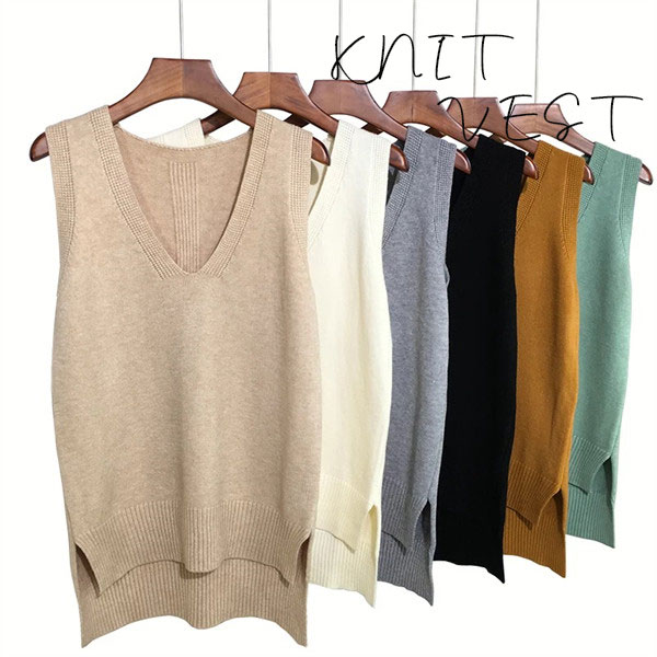 ニットベスト レディース セーター 秋冬 トップス ジレー ランドネック ノースリーブ ゆったり プルオーバー 無地 秋コーデ カジュアル 通勤