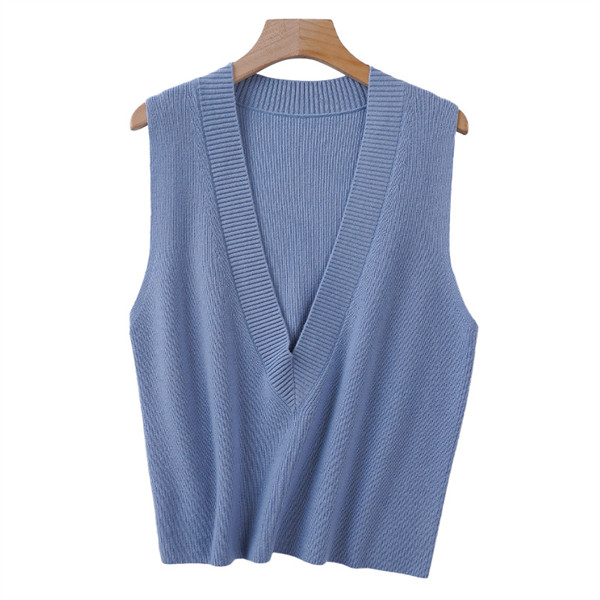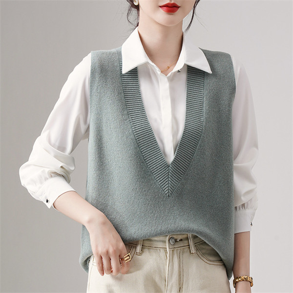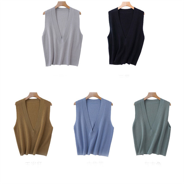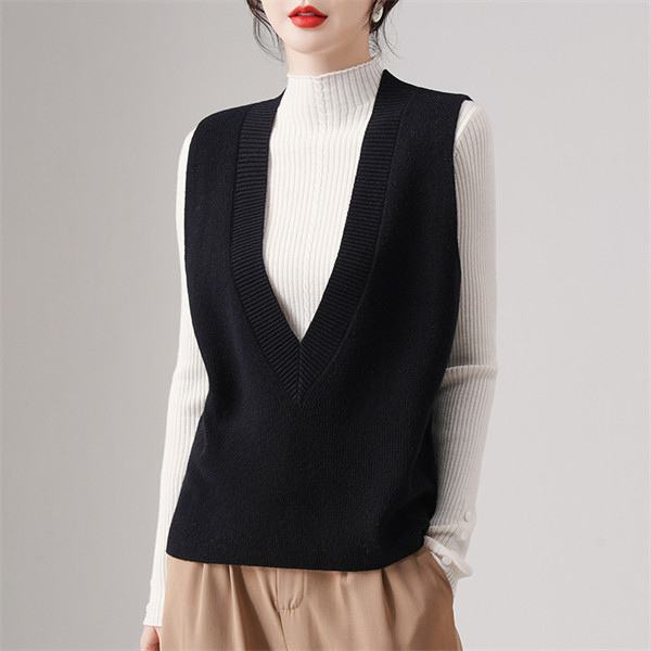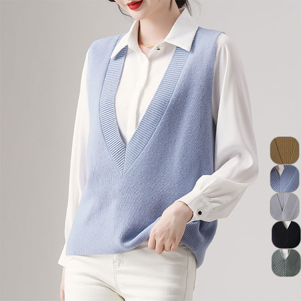 ニットベスト レディース セーター 秋冬 トップス ジレー vネック ウール ノースリーブ ゆったり プルオーバー 無地 通勤 体型カバー