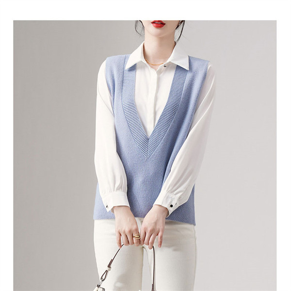 ◎肌寒い時には、このニットベストを合わせて暖か。