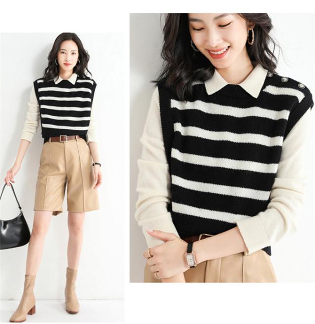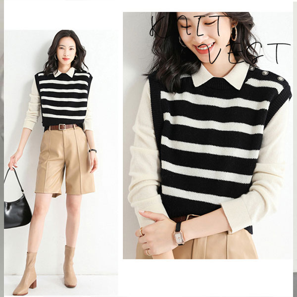 ◎肌寒い時には、このニットベストを合わせて暖か。