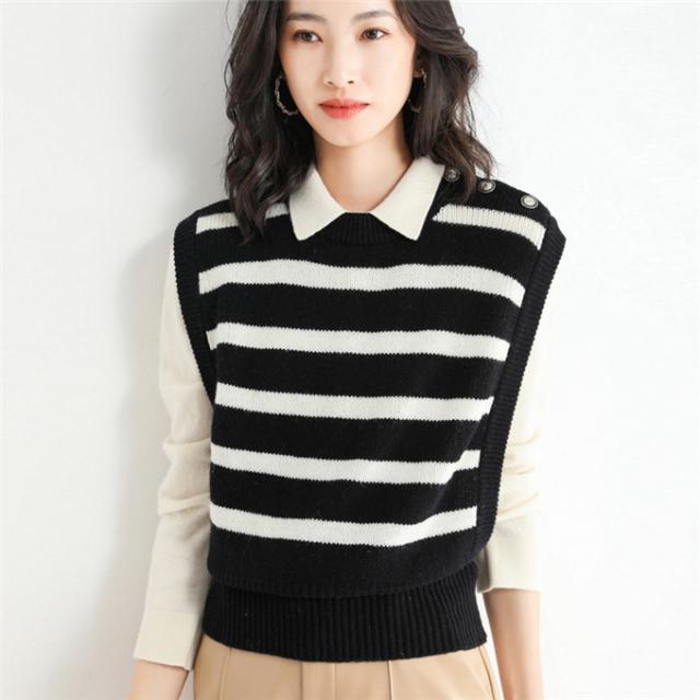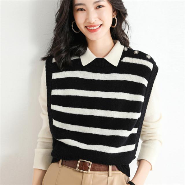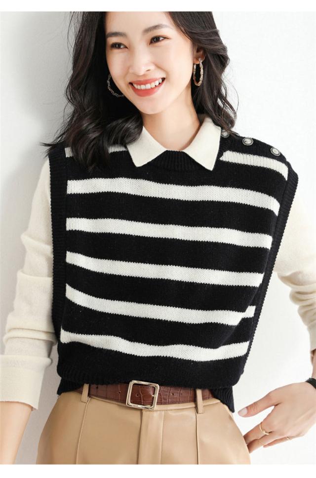 ニットベスト レディース セーター 秋冬 トップス ジレー ランドネック ノースリーブ ゆったり プルオーバー 無地 秋コーデ 通勤 体型カバー