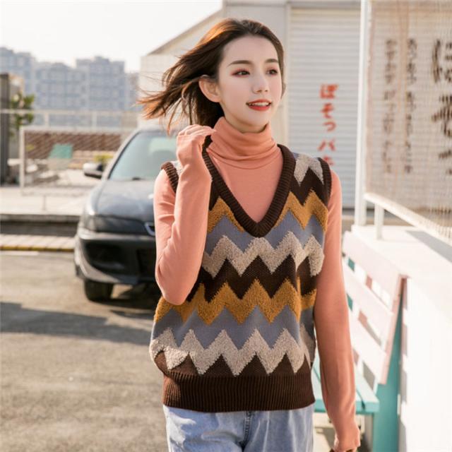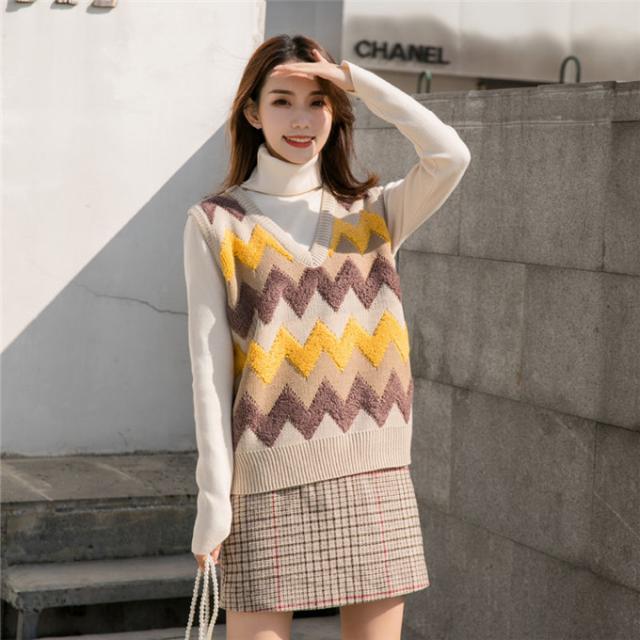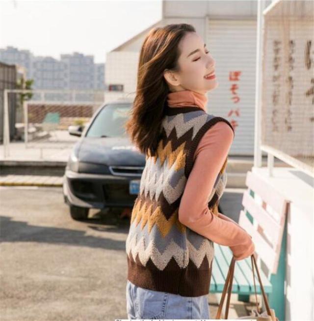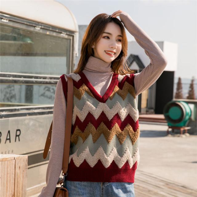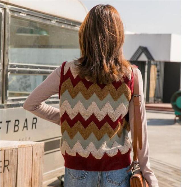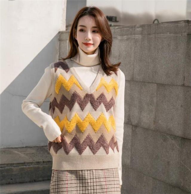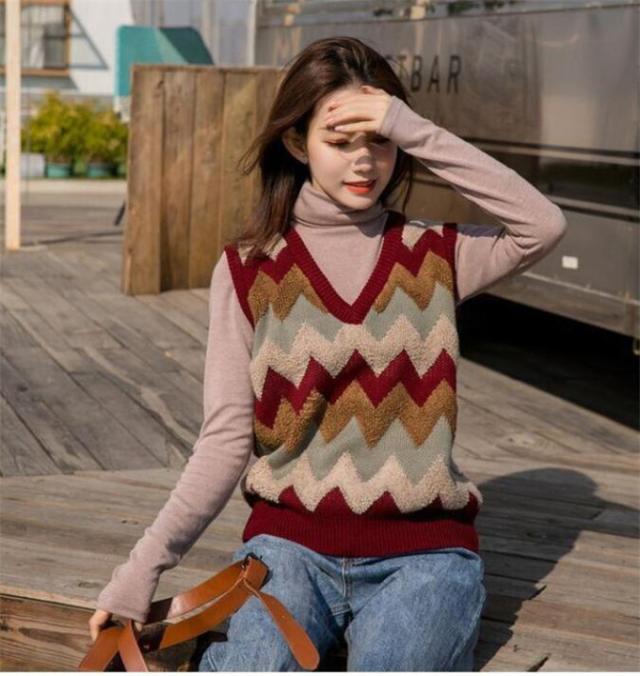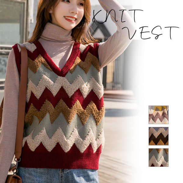 ニットベスト レディース セーター 秋冬 チェック柄 ジレー vネック ノースリーブ ゆったり プルオーバー 無地 秋コーデ カジュアル