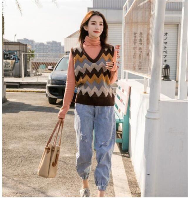 ◎肌寒い時には、このニットベストを合わせて暖か。