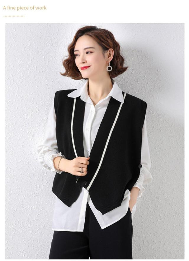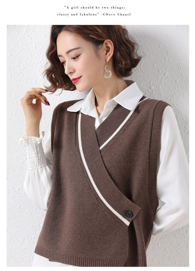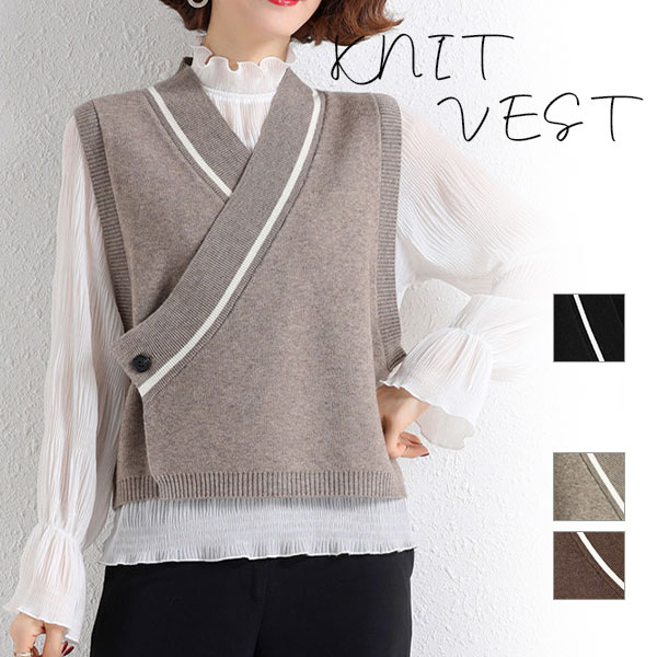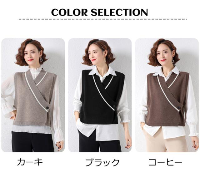 ニットベスト レディース セーター 秋冬 トップス ジレー vネック ノースリーブ ゆったり プルオーバー 無地 秋コーデ 前開け カジュアル 薄手