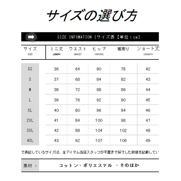 サイズ:/XS/S/M/L/XL/2XL/3XL/4XL